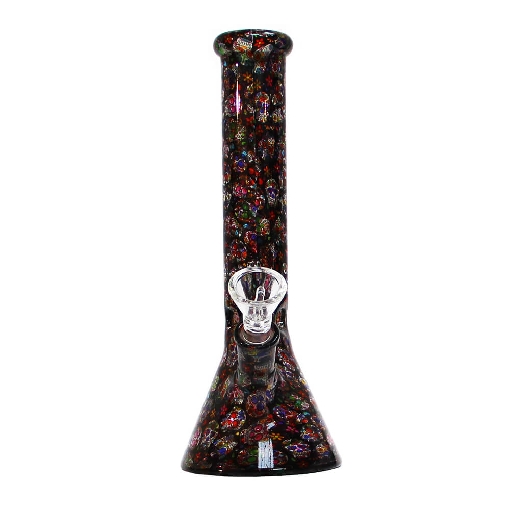 Lyft fram stämningen med denna färgstarka glasbong som påminner om mexikansk folklig festlighet och Día de los Muertos–estetik. Den multicolorerade skalle-designen ger direkten partykänsla och blir ett blickfång i din butik.