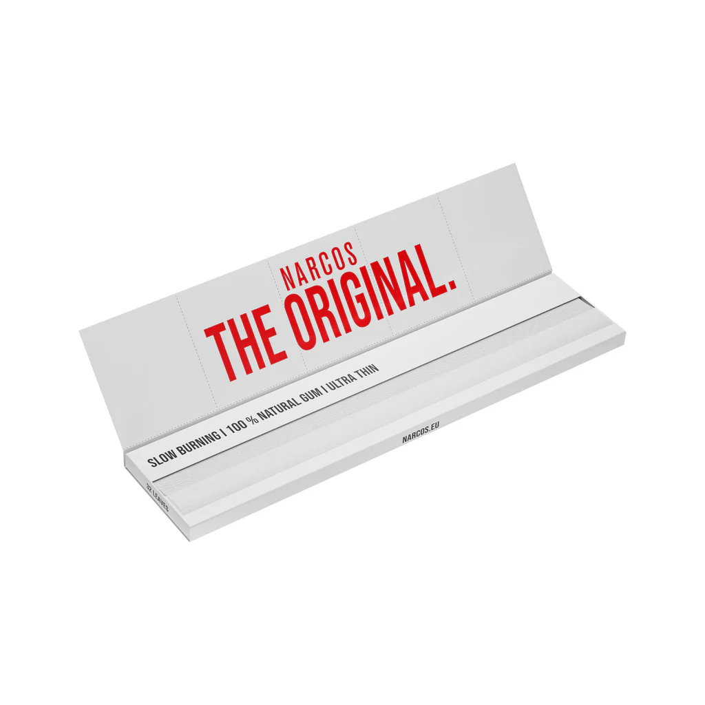 Narcos Slim rolling papers i King Size Slim-format – ultratunna papper med naturligt gummi och långsam brinntid.