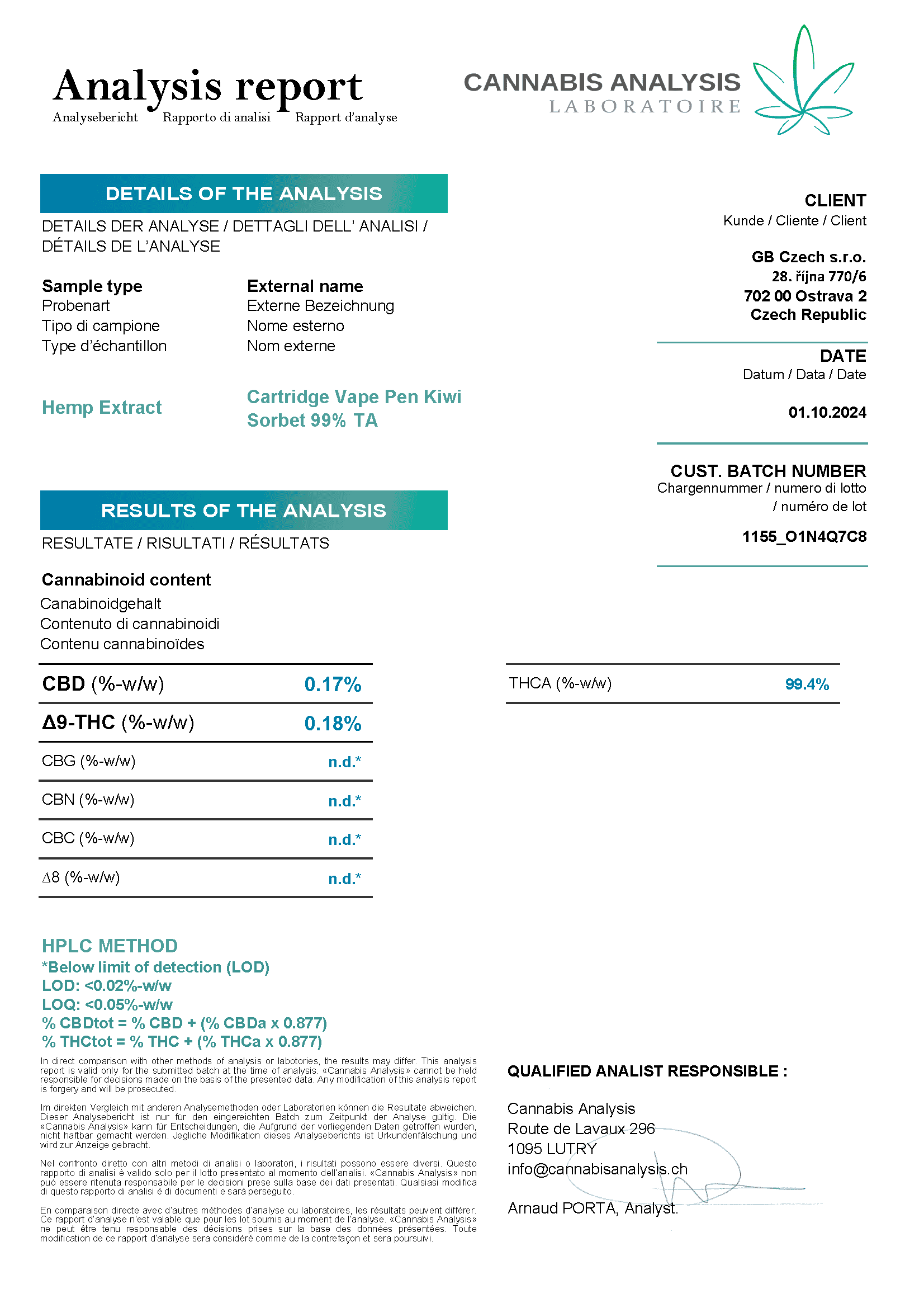 THCA Cartridge 99% - Magic Farmers - Kiwi Sorbet